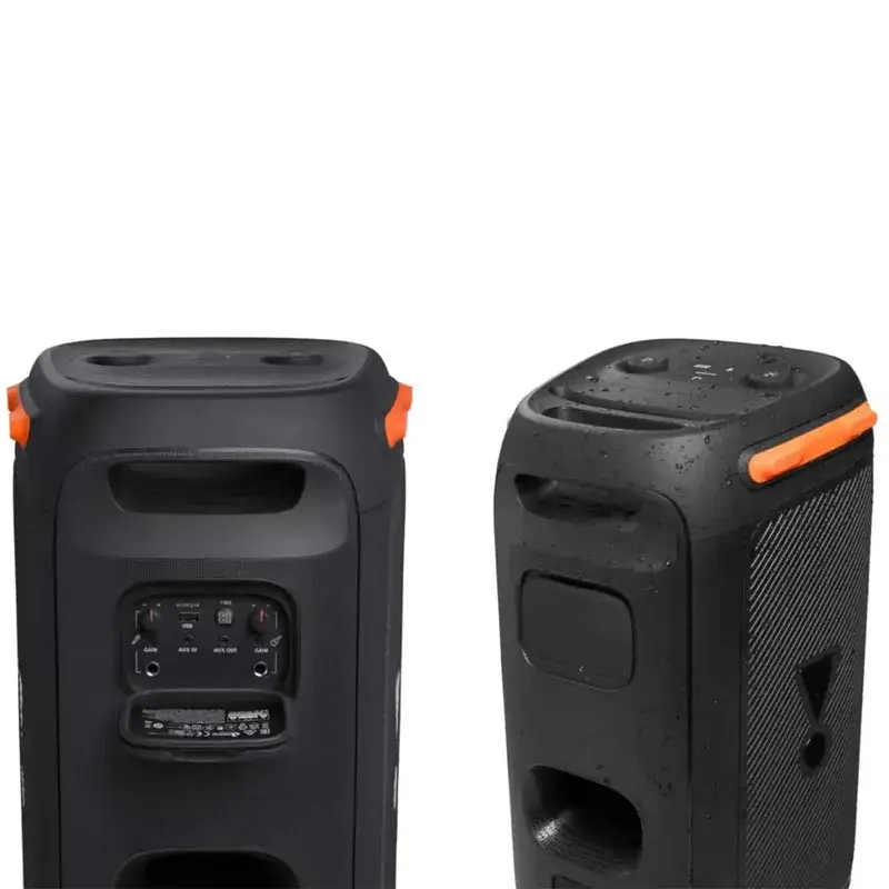 اسپیکر JBL PartyBox 710 یک اسپیکر قدرتمند و قابل حمل است. این اسپیکر با داشتن قدرت خروجی صدای ۷۵۰ وات و بلندگویی با سایز ۱۲ اینچ، تجربهی صوتی بینظیری را ایجاد میکند. همچنین با قابلیت اتصال به بلوتوث، USB و ورودی AUX، شما میتوانید انواع دستگاهها را به این اسپیکر متصل کرده و موسیقی خود را پخش کنید. علاوه بر این، اسپیکر JBL PartyBox 710 دارای نورپردازی LED چشمگیری است، که حالتهای مختلفی از جمله رقص نور، تغییر رنگ و افکتهای متنوع را ارائه میدهد و میتواند به جشنها و مهمانیها زندگی ببخشد.